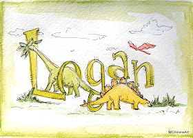 This is the most recent painting I did. It is for the sweetest little boy. His mom said that when he wakes up he says, "Hello Dinosaur."